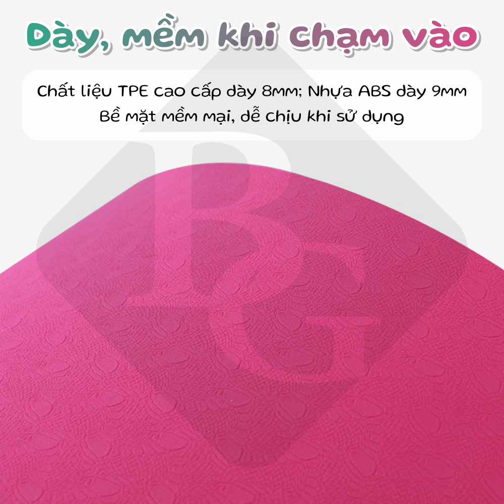 - Thảm Tập Gym Và Yoga 2 Lớp TPE Eco (6mm) là người bạn đồng hành cùng người tập Yoga với độ dày 6mm. - Mặt dưới có độ bán dính và bám sàn cao,