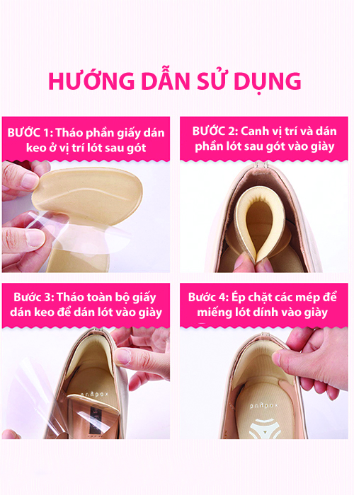 - Đặt lót giày đệm êm ngón chân vào mũi giày và sử dụng. Lót giày có thể giặt sạch để tái sử dụng. HƯỚNG DẪN SỬ DỤNG - LÓT GIÀY BẢO VỆ GÓT CHÂN 2 TRONG 1