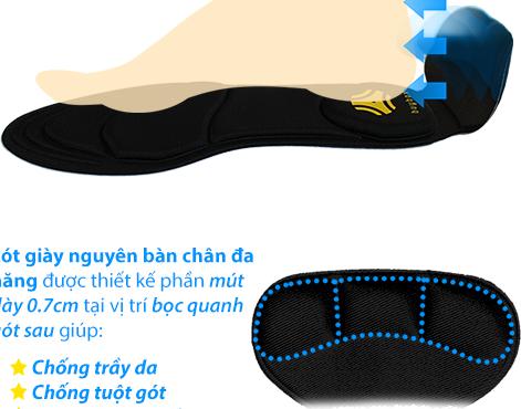 - Thiết kế: lót được thiết kế 4D theo cấu tạo và đặc điểm vận động của bàn chân giúp thoải mái khi mang giày.