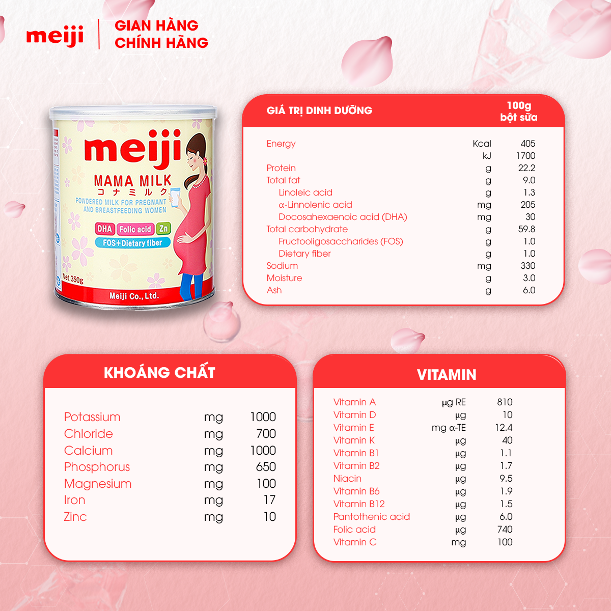 Mua tại TiktokCombo Thực Phẩm Bổ Sung dành cho bà mẹ mang thai và cho con bú Meiji Mama Milk (350g) Và Sản Phẩm Dinh Dưỡng Công Thức Meiji Growing Up Formula Cho Trẻ Từ 1-3 Tuổi (800g) THÔNG TIN SẢN PHẨM
