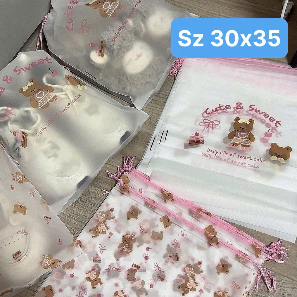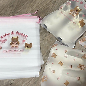 Họa tiết: In hình gấu Teddy, bánh ngọt, nơ hồng với phong cách "Cute & Sweet" siêu đáng yêu