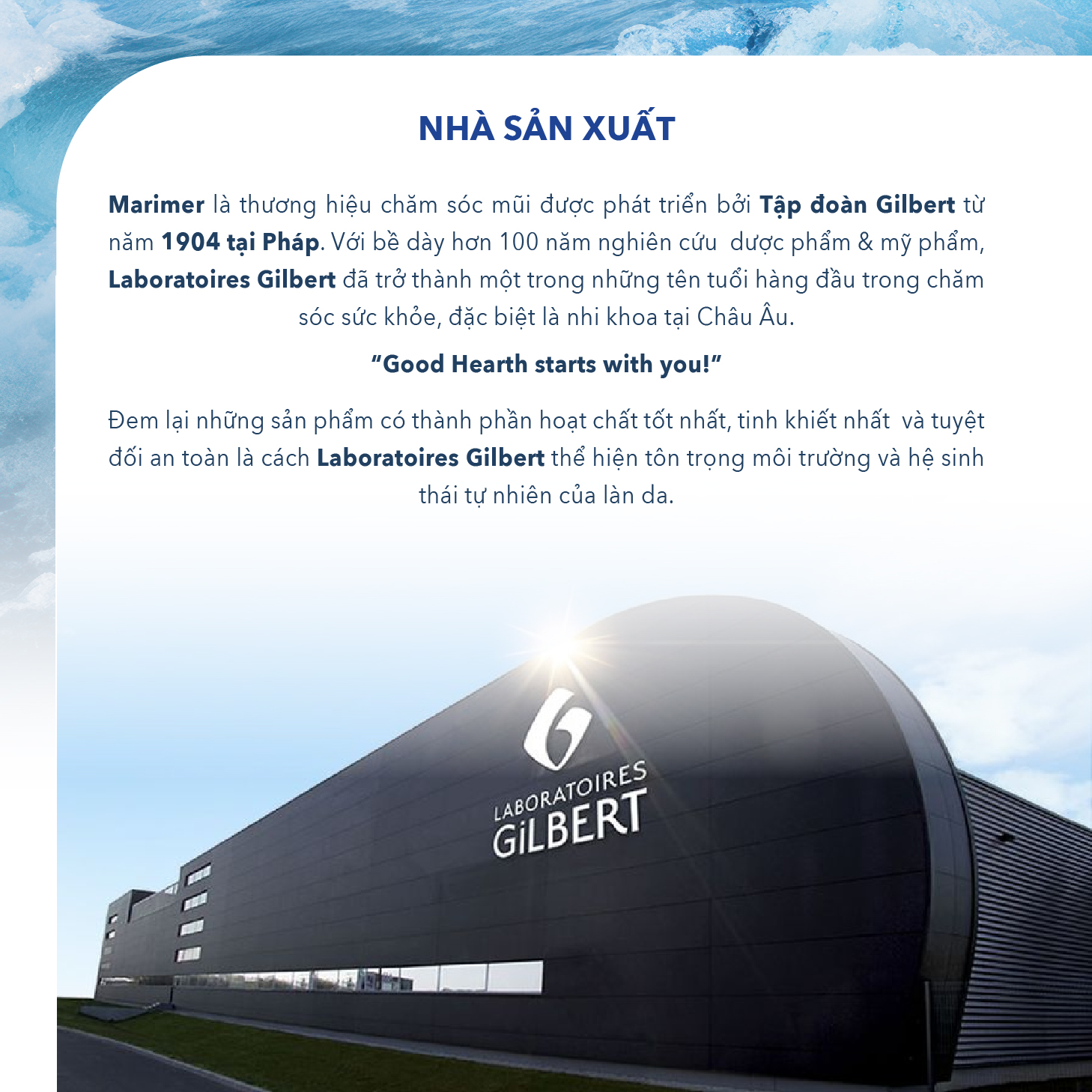 THÀNH PHẦN: Nước biển đẳng trương, nước tinh khiết. CHỈ ĐỊNH: Sử dụng hàng ngày, - Marimer Daily Nasal Hygiene: dành cho người lớn và trẻ em từ 3 tuổi. - Marimer Baby Daily Nasal Hygiene: dành cho trẻ