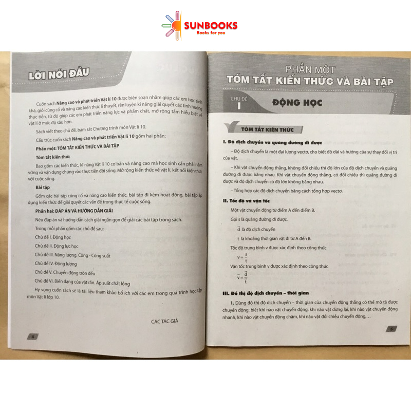 - Sách Nâng Cao Và Phát Triển Vật Lý 10 Thông tin chi tiết: Công ty phát hành: NXb Giáo dục Việt Nam Tác Giả: Nhiều tác giả Số trang:89 Năm xuất bản: 2022 Khổ sách: 19x27cm Hình thức :bìa mềm NXB: NXB Giáo dục Việt Nam Giới Thiệu sách: Nội dung sách trình bày theo nhiều chủ đề khác nhau: Điện tích, điện trường; Dòng điện không đổi; Dòng điện trong các môi trường; Từ trường; Cảm ứng điện từ; Khúc xạ ánh sáng; Mắt, các dụng cụ quang. Mỗi chủ đề bao gồm 2 phần: A. Tóm tắt lý thuyết: tóm tắt những kiến thức cơ bản trong chương trình có liên quan đến chủ đề. Đồng thời trình bày thêm những kiến thức mang tính chất mở rộng, nâng cao. B. Bài tập: Các bài tập ví dụ điển hình của chủ đề, kèm theo bài giải chi tiết, hướng dẫn về phương pháp giải, cách khắc phục những khó khăn, sai lầm mà học sinh thường gặp khi giải từng loại bài tập. Phần sau là các bài tập trắc nghiệm, tự luận, định tính, định lượng… Một số bài tập được xây dựng dựa trên các đề thi học sinh giỏi Vật lí. Phần đáp án và hướng dẫn giải gợi ý cho các em hướng giải bài tập và đáp số để các em phát huy tinh thần tìm tòi, suy nghĩ, sang tạo trong cách giải để tự giải bài tập.