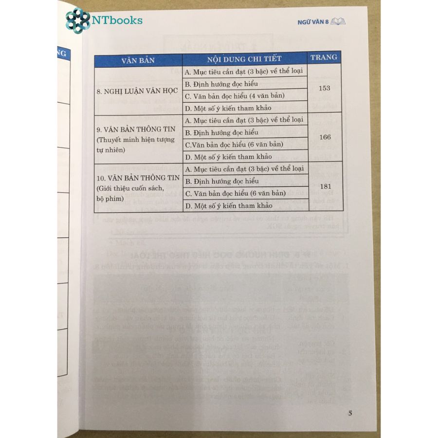 Cuốn sách gồm 10 đơn vị bài ứng với 10 thể loại/tiểu loại (đọc hiểu) của chương trình Ngữ văn 8 thuộc 3 kiểu văn bản chính.
