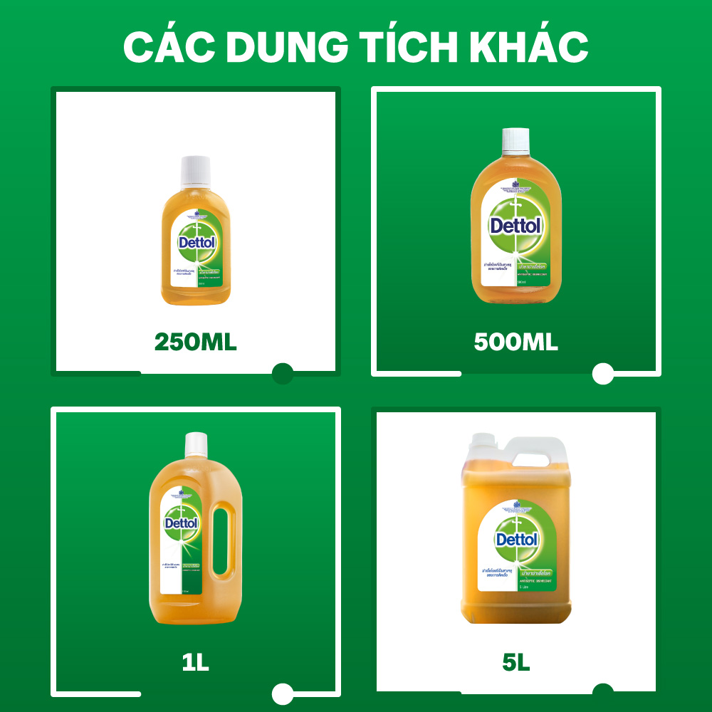 • Bồn cầu, chậu rửa (không acrylic), cống, v.v…: Sử dụng dung dịch Dettol không pha loãng. Lưu ý: không dùng cho bề mặt tiếp xúc trực tiếp với thực phẩm. HƯỚNG DẪN BẢO QUẢN: • Bảo quản nơi khô mát, tránh ánh sáng mặt trời trực tiếp. • Bảo quản dưới 30 độ C. • Hạn sử dụng: 36 tháng kể từ ngày sản xuất. KHUYẾN CÁO AN TOÀN • Sản phẩm không pha loãng sẽ gây kích ứng mắt. • Sương mù/ hơi có thể gây kích ứng đường hô hấp trên. • Sản phẩm có thể gây kích ứng đường tiêu hóa trên. • Độc tính về sinh thái của sản phẩm này chưa được xác định. • Không được đổ sản phẩm này vào kênh rạch. • Chỉ dùng ngoài • Để xa tầm tay trẻ em SƠ CỨU • Tiếp xúc với mắt: Rửa mắt ngay lập tức với nhiều nước. Nếu kích ứng kéo dài, liên hệ với bác sĩ • Tiếp xúc với da: Rửa sạch da bằng nước. Nếu kích thích xảy ra và kéo dài, liên hệ với bác sĩ. • Hít phải: Di chuyển đến nơi có không khí sạch. Nếu có khó thở, tìm kiếm sự chăm sóc y tế. • Nuốt phải: Uống 2 ly nước. Liên hệ với bác sĩ hoặc trung tâm ‘Thông tin Độc chất’ THÔNG TIN THƯƠNG HIỆU Dettol là nhãn hiệu thuộc sở hữu của tập đoàn Reckitt Benckiser. Sau 85 hình thành và phát triển, Dettol đã trở thành thương hiệu diệt khuẩn nổi tiếng nhất thế giới và được nhiều khách hàng yêu thích, tin dùng.