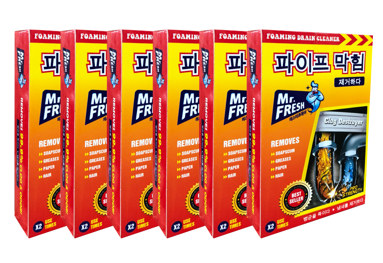 Bột thông tắc đường ống thoát nước Mr.Fresh Hàn Quốc là một trong những sản phẩm tốt nhất được bán chạy ở Hàn Quốc với công thức tiên tiến, các thành phần hóa học chuyên dụng, độ tẩy cực mạnh sẽ xoáy tan mọi cặn bẩn trong đường ống một cách hiệu quả.Sản phẩm sẽ thông sạch mọi loại cặn bẩn như giấy, rác, rau, mỡ, thịt, gạo, tóc… kẹt trong đường ống thoát nước của chậu rửa nhà bếp, lavabo, bồn tắm… mà không làm hư hại đường ống và các thiết bị vệ sinh.Bột thông tắc đường ống thoát nước Mr.Fresh Hàn Quốc trong thành phần của nó luôn có các hỗn hợp hóa học có độ kiềm, độ ăn mòn, độ phân hủy cực cao, giúp phân hủy các hợp chất hữu cơ, chất cặn bã có trong đường ống gây tắc nghẽn.