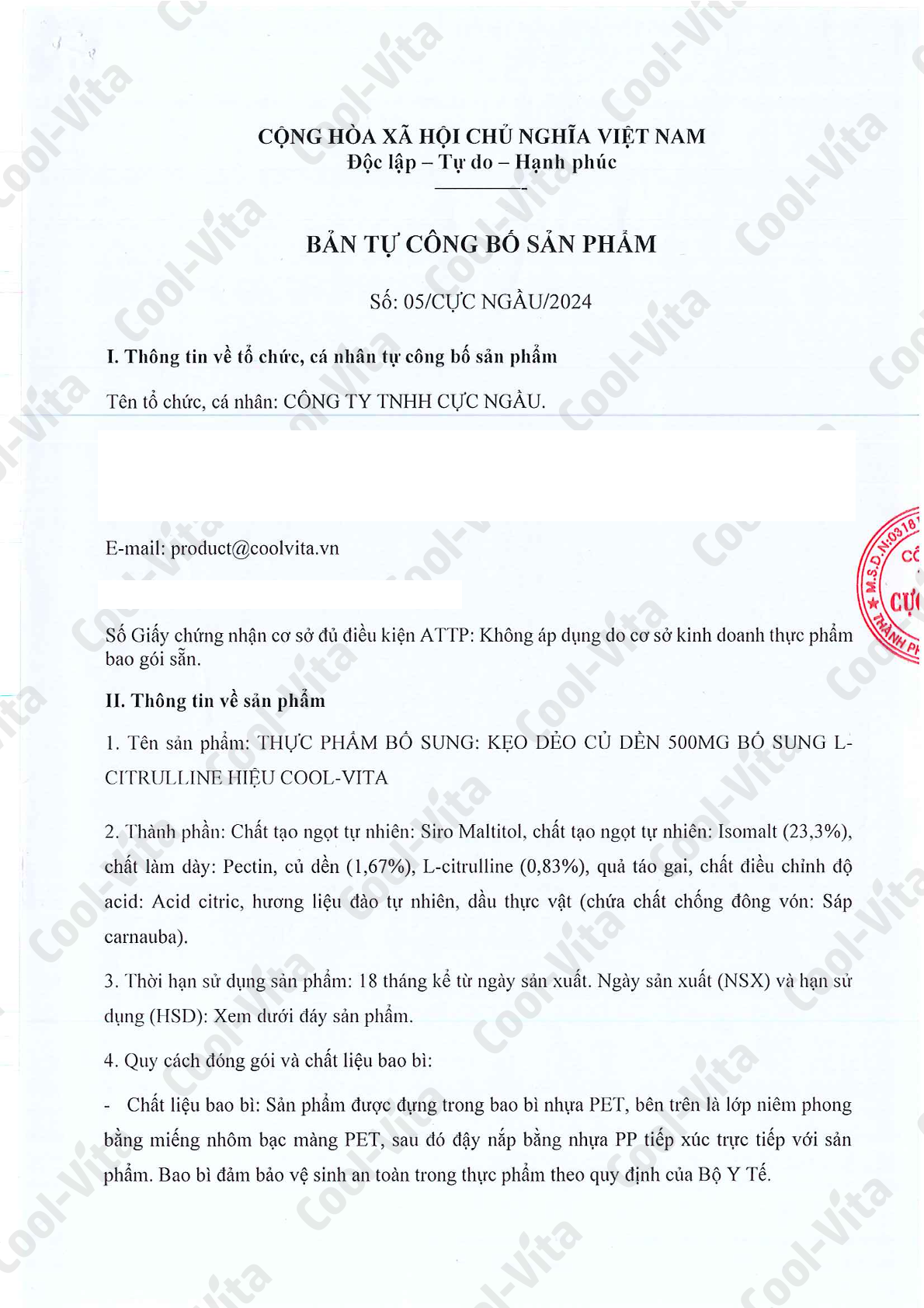 Mua tại TiktokCombo 2 Hộp Kẹo Dẻo Củ Dền Hỗ Trợ Sức Khỏe Tim Mạch & Hỗ Trợ Tăng Cường Sức Bền Vị Đào Kết Hợp L-Citrulline Coolvita (60 viên x 3g)/hộp Kẹo dẻo củ dền CoolVita với 500mg chiết xuất củ dền trong mỗi 2 viên kẹo, kết hợp cùng L-Citrulline là sự lựa chọn hoàn hảo hỗ trợ bạn duy trì sức bền dẻo dai, hỗ trợ cải thiện sức khỏe tim mạch và hỗ trợ tăng cường khả năng vận động. Với thành phần chính là chiết xuất củ dền và L-Citrulline, Kẹo Dẻo Củ Dền CoolVita hỗ trợ bạn đạt được thể trạng tốt hơn, hỗ trợ tăng cường khả năng chịu đựng và hỗ trợ phục hồi nhanh chóng sau khi tập luyện. Kẹo Dẻo Củ Dền CoolVita có vị ngọt tự nhiên, thơm vị đào, sẽ là một sản phẩm không thể bỏ qua nếu như bạn là người yêu thích một chế độ dinh dưỡng lành mạnh và có hương vị thơm ngon. Đặc biệt hiệu quả cho phụ nữ: Hỗ trợ hấp thụ sắt • Betaine trong củ dền hỗ trợ tăng hiệu quả hấp thụ sắt, cải thiện tình trạng thiếu máu. Bảo vệ tế bào máu khỏi lão hóa • Betalains (sắc tố đỏ tự nhiên trong củ dền) có đặc tính hỗ trợ chống oxy hóa mạnh, bảo vệ tế bào máu và làm chậm quá trình lão hóa tế bào. Cải thiện sức khỏe tổng thể: • Hỗ trợ giúp da dẻ hồng hào hơn, nhờ bổ sung sắt và tăng cường tuần hoàn máu, cải thiện tình trạng da nhợt nhạt do thiếu máu. • Hỗ trợ kinh nguyệt đều đặn hơn, giúp điều hòa hormone trong cơ thể, cải thiện các vấn đề kinh nguyệt do thiếu máu hoặc tuần hoàn máu không tốt. • Hỗ trợ giấc ngủ tốt hơn, Magie và nitrat trong củ dền giúp thư giãn cơ bắp, giảm huyết áp, cải thiện chất lượng giấc ngủ. • Củ dền thúc đẩy lưu thông máu, đặc biệt hữu ích cho phụ nữ hay bị lạnh tay chân. Những lợi ích nổi bật khác: Hỗ trợ tăng cường sức bền và thể lực: L-Citrulline hỗ trợ trì hoãn mệt mỏi cơ bắp, hỗ trợ tăng cường khả năng chịu đựng và phục hồi sau tập luyện. Hỗ trợ sức khỏe tim mạch: Hỗ trợ bổ sung betaine (choline betaine) và chiết xuất quả táo gai hỗ trợ cải thiện lưu thông máu, hỗ trợ sức khỏe tim mạch và hỗ trợ tăng cường chức năng tiêu hóa. Hỗ trợ tiêu hóa: Củ dền chứa nhiều chất xơ và betaine hydrochlorid, hỗ trợ cho sự co bóp của ruột và hỗ trợ giữ cho hệ tiêu hóa luôn khỏe mạnh. Giải pháp dinh dưỡng tiện lợi: Kẹo dẻo dễ sử dụng, hỗ trợ bổ sung dưỡng chất cần thiết mỗi ngày mà không cần phải pha chế phức tạp. Vì sao nên chọn Kẹo Dẻo Củ Dền COOL-VITA? Hỗ trợ dễ dàng bổ sung dinh dưỡng: Kẹo Dẻo Củ Dền CoolVita hỗ trợ bổ sung các dưỡng chất thiết yếu mỗi ngày mà không cần phải lo lắng về khẩu vị hay việc chuẩn bị phức tạp. Vị ngọt tự nhiên: Với vị đào ngọt dịu nhẹ và dễ chịu, Kẹo Dẻo Củ Dền CoolVita không gây cảm giác ngán, thích hợp cho cả người lớn và trẻ em. Tiện lợi và hiệu quả: Sản phẩm phù hợp với người tập thể thao, những người muốn tăng cường sức bền hoặc cải thiện sức khỏe tim mạch. Khối lượng tịnh: 180g (60 viên x 3g) Thành phần: Chất tạo ngọt tự nhiên: Siro Maltitol, chất tạo ngọt tự nhiên: Isomalt (23,3%), chất làm dày: Pectin, Chiết xuất củ dền cô đặc (1,67%), L-citrulline (0,83%), quả táo gai, chất điều chỉnh độ acid: Acid citric, hương liệu đào tự nhiên, dầu thực vật (chứa chất chống đông vón: Sáp carnauba). Hướng dẫn sử dụng: