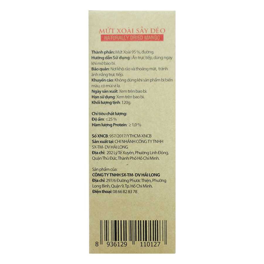 - Combo 2 Hộp Mứt Xoài Sấy Dẻo Hải Long (120g / Hộp) là món ăn vặt được nhiều người ưa chuộng bởi độ dẻo, vị chua chua ngọt ngọt thơm lừng, rất dễ ăn