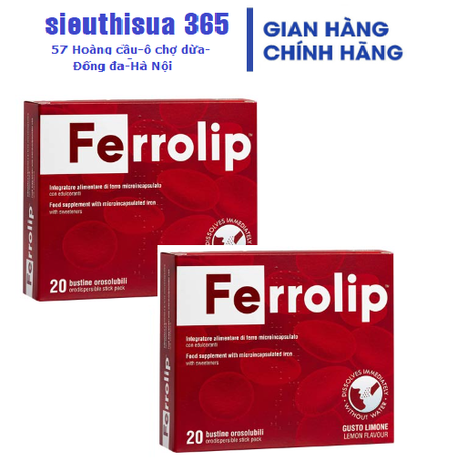 - Nữ giới trong thời kỳ kinh nguyệt có nhu cầu bổ sung sắt Lưu ý: Đối với trẻ dưới 6 tuổi cần tham khảo ý kiến của bác sĩ trước khi sử dụng sản phẩm Ferrolip Thành phần sắt Ferrolip 1 gói bột sắt Ferrolip có chứa: Sắt iii pyrophosphate được bao vi nang (bao màng liposome). Hàm lượng sắt nguyên tốt mỗi gói tương ứng 30mg. Phụ liệu: tinh bột ngô, chất nhũ hóa: lecithin, chất điều chỉnh độ chua: axit citric; chất điều hương; chất ổn định: silicon dioxide; chất tạo ngọt: sorbitol, maltodextrin, sucralose, acesulfame K. Tham khảo: Công dụng sắt Ferrolip Bổ sung sắt cho cơ thể. Hỗ trợ tạo hồng cầu, giúp giảm nguy cơ thiếu máu do thiếu sắt. Ferrolip có tốt không? Thực phẩm bổ sung sắt Ferrolip được các bác sĩ của nhiều bệnh viện lớn tại Hà Nội tin tưởng sử dụng để bổ sung sắt cho các đối tượng. Liều dùng, hướng dẫn sử dụng và cách bảo quản Ferrolip Liều dùng Ferrolip Khuyến nghị sử dụng: 1 gói Ferrolip/ngày. Sản phẩm có thể sử dụng trực tiếp à không cần hòa tan với nước. Ferrolip có dạng bột có vị chanh dễ chịu, không tanh, không dư vị kim loại. Hướng dẫn sử dụng Sử dụng trực tiếp: Đổ từ từ gói Ferrolip vào miệng. Sắt Ferrolip với dạng buccal sẽ tan ngay trong miệng mà không để lại dư vị kim loại như các sản phẩm bổ sung sắt khác trên thị trường. Cách bảo quản Bảo quản nhiệt độ phòng, nơi khô thoáng, tránh ánh nắng mặt trời. Để xa tầm tay trẻ em. Sản phẩm có hạn dùng 36 tháng kể từ ngày sản xuất. Ngày hết hạn xem tại “Best before end” trên vỏ hộp sản phẩm.