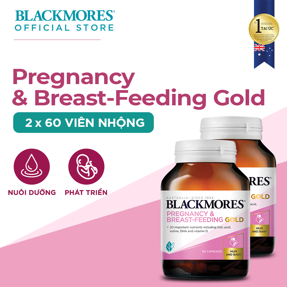 Vitamin Tổng Hợp Cho Bà Bầu và Mẹ Cho Con Bú Blackmores Pregnancy & Breast-Feeding Gold được điều chế để hỗ trợ thai kỳ khỏe mạnh hơn cho cả mẹ và bé. Chứa 20 chất dinh dưỡng được thiết kế riêng bao gồm axit folic, sắt, DHA và vitamin D, cung cấp liều lượng lý tưởng cho mẹ và hỗ trợ cho bé phát triển khỏe mạnh. Thành phần chứa Crom picolinate giúp giảm nguy cơ tiểu đường thai kỳ.