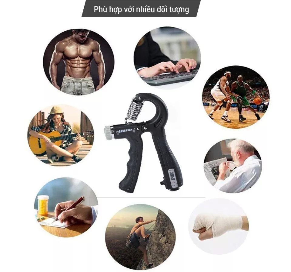 - Có núm điều chỉnh lực bóp từ 5 - 60kg giúp người tập lựa chọn cân nặng phù hợp.