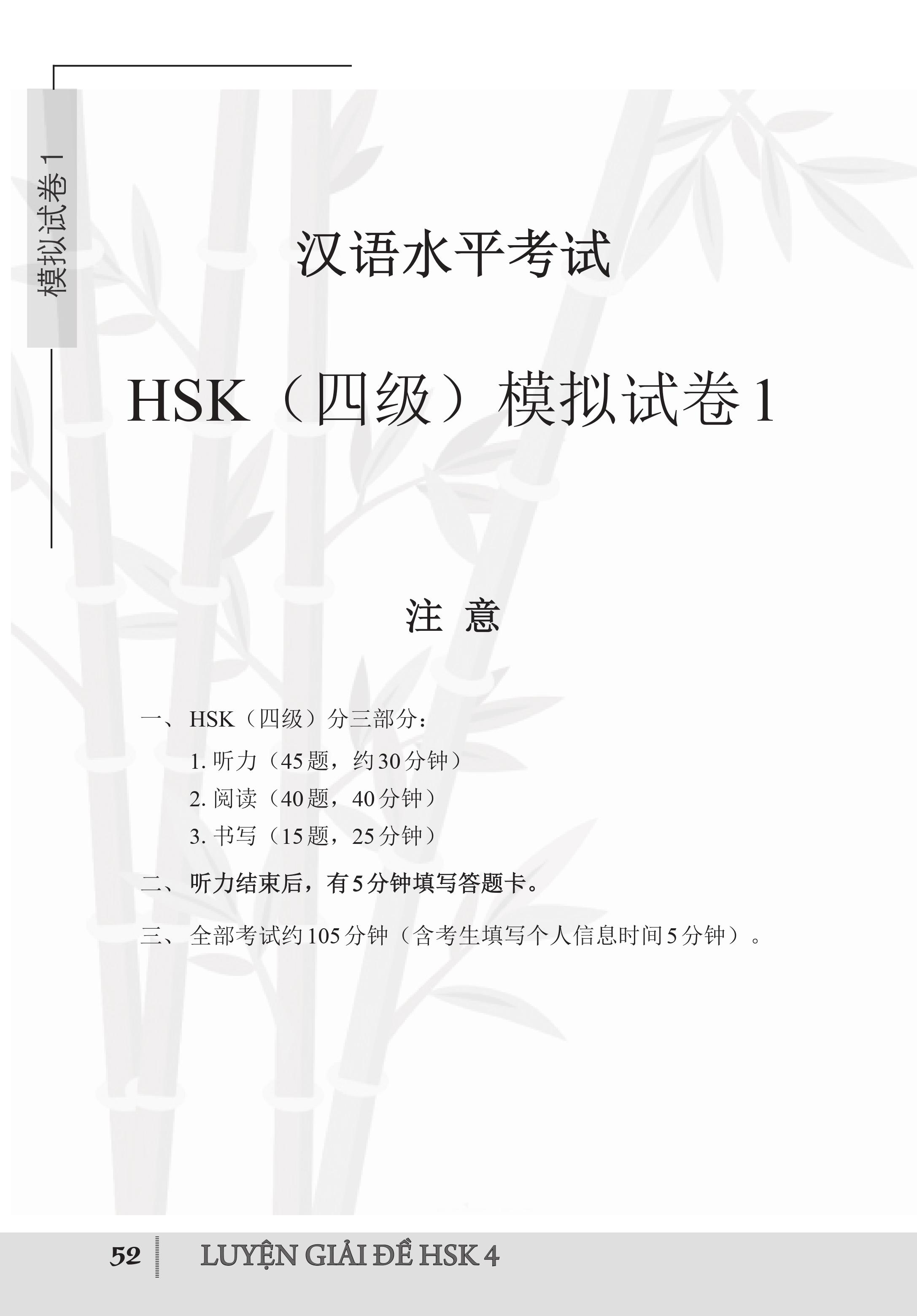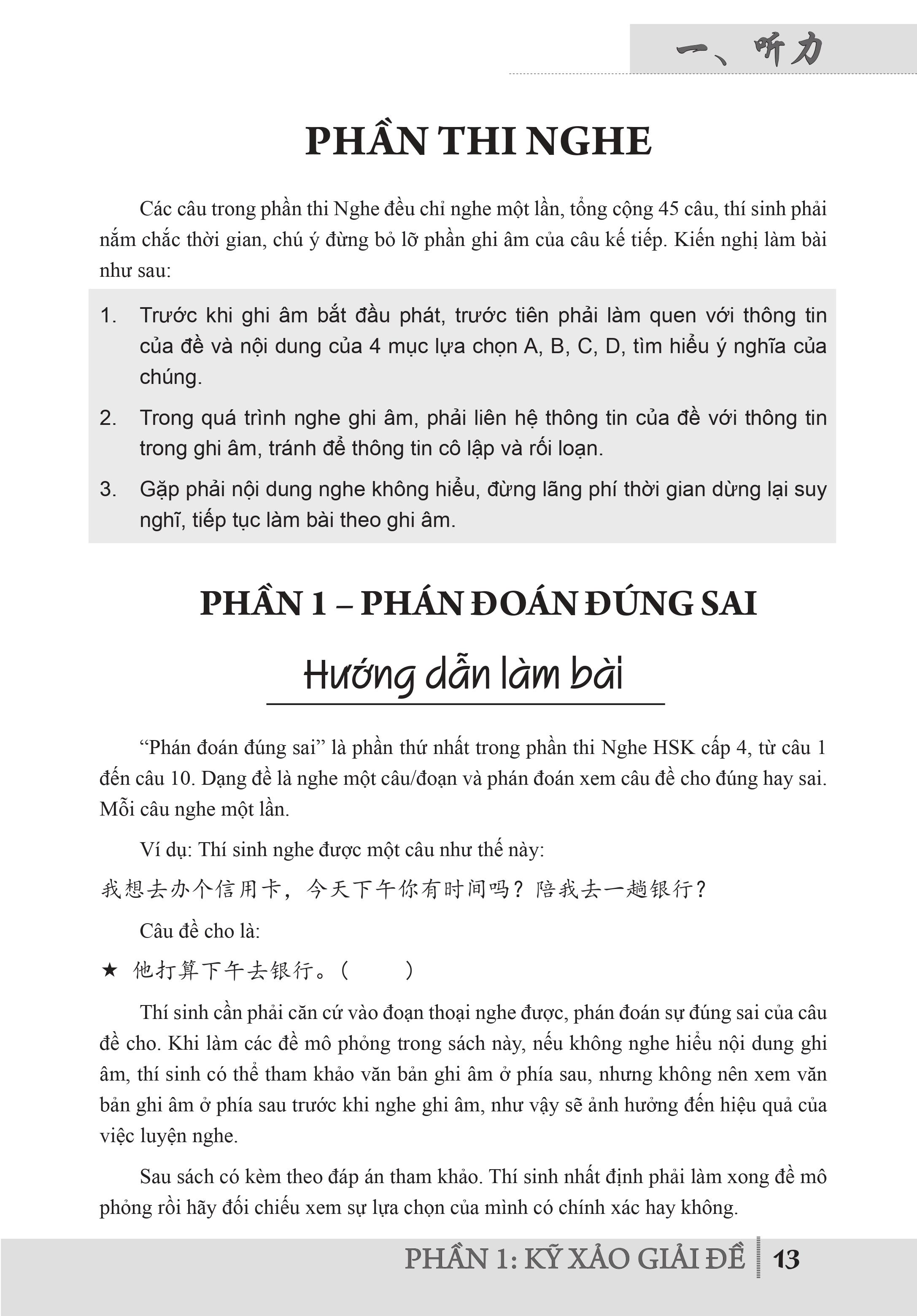 - Phần 2: Đề thi mô phỏng (cung cấp 12 đề thi mô phỏng HSK cấp 4)