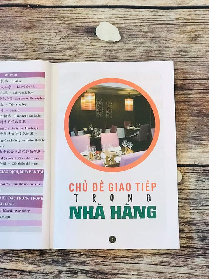 1. Tác giả: Nhật Phạm - Hạ Bắc Sinh Năm phát hành: 2019 Số trang: 202 trang NXB Thanh Niên SÁCH CHO NGÀNH KHÁCH SẠN NHÀ HÀNG DU LỊCH! ️Bao gồm 40 nội dung ứng dụng với nhiều mẫu hội thoại khác nhau trong giao tiếp khách sạn du lịch nằm trong 6 chương lớn (Có trong ảnh ở bài đăng). Sách biên soạn phù hợp cho các nhân viên khách sạn nhà hàng, hướng dẫn viên du lịch và các khách hàng giao dịch với các nhà hàng khách sạn, cửa hàng sử dụng tiếng Trung! Sách được tổng hợp biên soạn bởi tác giả NHật Phạm, kiểm duyệt nội dung chuyên gia Hạ Bắc Sinh (chuyên gia ngôn ngữ người Trung Quốc). Tổng hợp từ vựng chuyên ngành thông dụng sau mỗi chủ đề giao tiếp hội thoại. Đầy đủ phiên âm tiếng Trung chuẩn cho 100% chữ Hán. Sách in màu cao cấp. Có audio nghe bằng tiếng Trung (Nhắn lại cho SHOP để nhận sau khi nhận được sách). Để học hiệu quả hơn với cuốn sách này bạn nên tham khảo và kết hợp thêm cuốn sách Du lịch Việt Nam ẩm thực và cảnh điểm song ngữ Trung Việt.