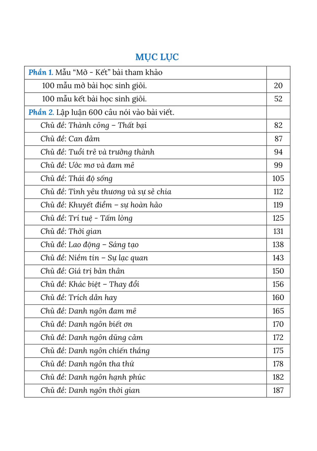 1. Lập luận câu nói vận dụng vào bài viết: 600 câu nói, kèm lập luận tham khảo đưa vào bài viết nhằm tăng tính thuyết phục.