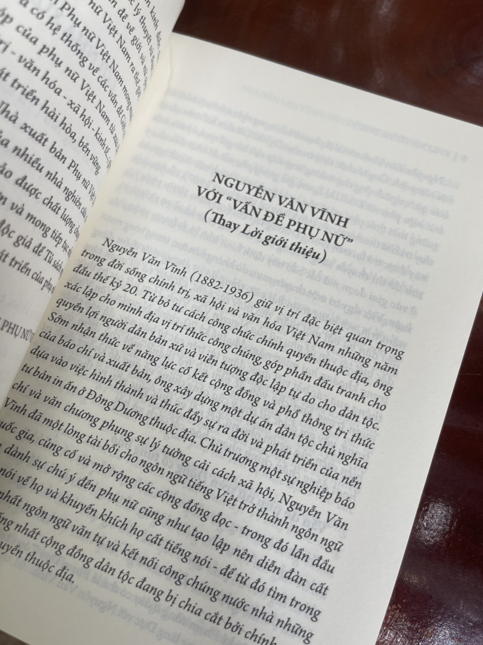 Nhà xuất bản Phụ Nữ đã kiên trì trong vòng 10 năm qua gây dựng tủ sách PHỤ NỮ TÙNG THƯ với tinh thần khôi phục và tái công bố các tư liệu đấu tranh cho nữ quyền tại Việt Nam hồi đầu thế kỷ 20. Lần lượt ta đã có thêm tư liệu từ Phan Bội Châu, Phan Khôi, in lại sách quý “Nam Nữ Bình Quyền” nhờ dự án này. Hôm nay ta có thêm 02 tập sách thuộc bộ này: công bố tác phẩm đăng báo của Nguyễn Văn Vĩnh và các bài đăng tại Huế về vấn đề nữ quyền trước 1945.