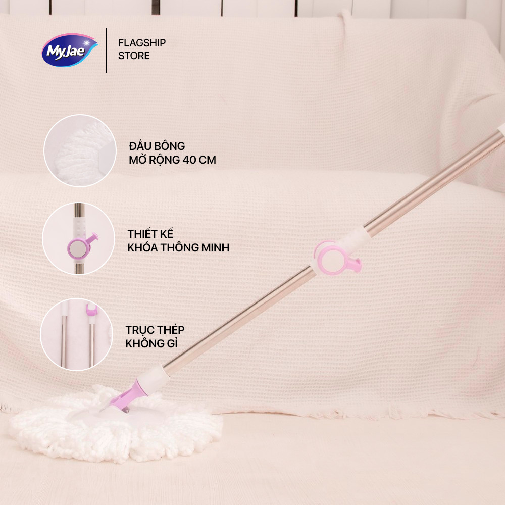 - Đặc điểm nổi bật: - - Chất liệu thép không gỉ: Chất lượng đảm bảo, tuổi thọ kéo dài. - - Đường kính bông lau lên đến 40cm: Cải thiện khả năng làm sạch