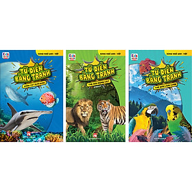 Bộ sách “Combo Từ điển bằng tranh – Động vật dưới nước, thế giới động vật, thế giới loài chim” được thiết kế dưới dạng từ điển bằng tranh (song ngữ Việt - Anh) tập hợp rất nhiều các ảnh chụp thật, rõ nét và ấn tượng về các loài động vật trong tự nhiên sẽ giúp bé làm quen với thế giới xung quanh và có những từ vựng đầu tiên làm nền tảng cho giao tiếp và tư duy.