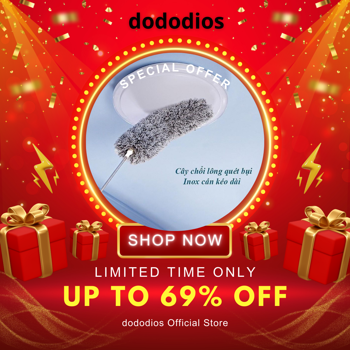 [COMBO 3 DỌN DẸP ĐÓN TẾT] 1 bàn chải vệ sinh khe hẹp + 1 chà sàn nhà tắm + 1 chổi quét trần nhà - Chính hãng dododios