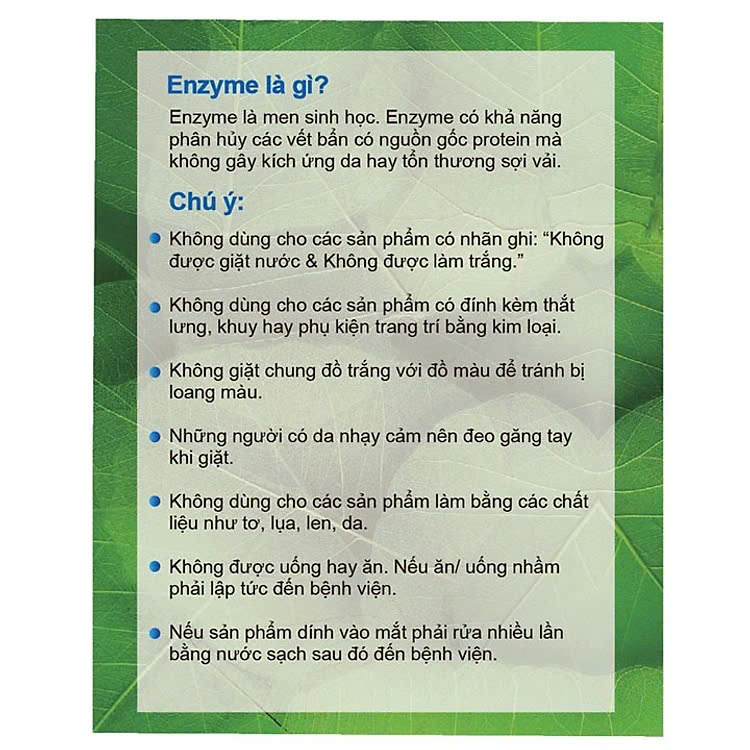 - Men sinh học có khả nang phân hủy các vết ố vàng & vết bẩn thực phẩm trên quần áo.