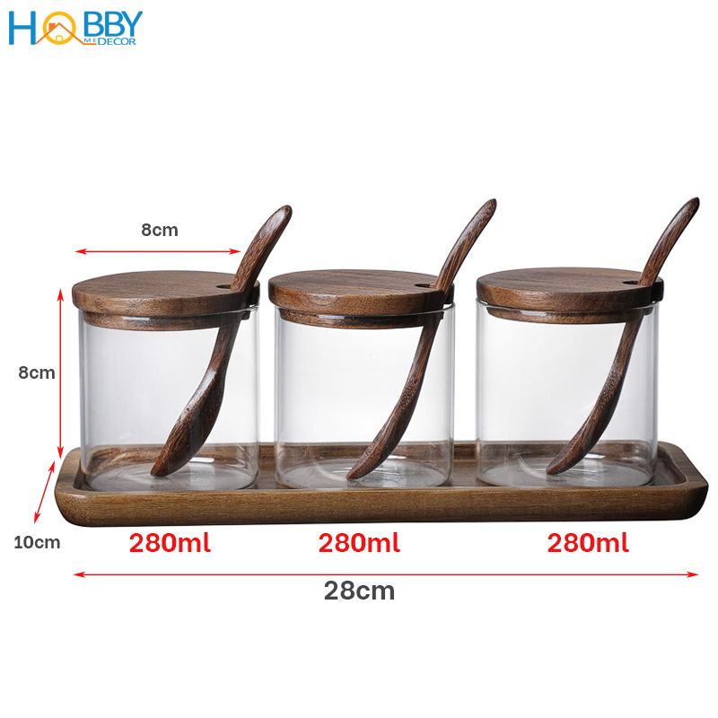 ✨Combo 3 hủ gia vị thủy tinh kèm khay muỗng Hobby Home Decor HGV3D