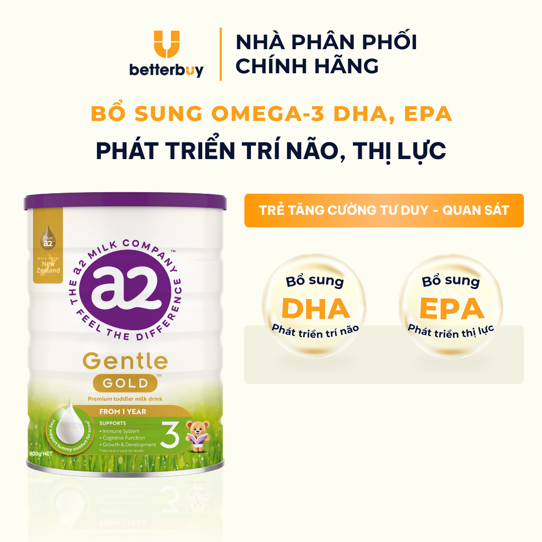 a2 Gentle Gold Premium - Sữa công thức nguyên kem nhập khẩu trực tiếp từ New Zealand, 100% đạm A2 chuyên hỗ trợ tiêu hóa, hấp thu và tăng cân hiệu quả cho trẻ
