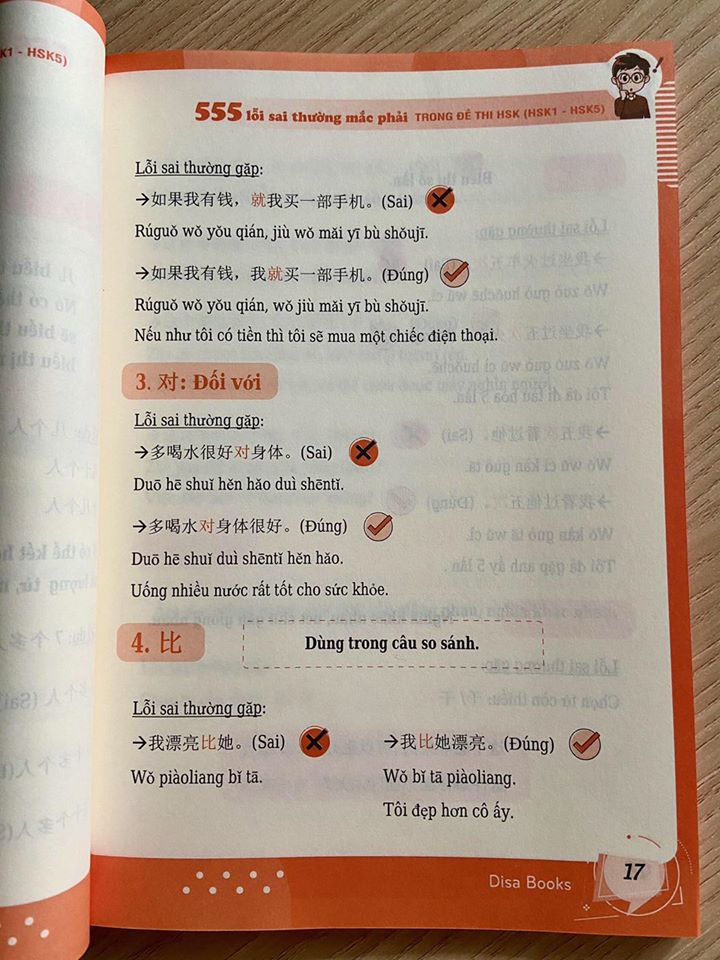 Cuốn sách 555 lỗi sai thường mắc phải trong đề thi HSK được biên soạn dựa trên nỗi thấu hiểu mà nhiều người trong chúng ta hay mắc phải khi ôn tập các cấp thi từ HSK1 đến HSK5 nhằm giúp các bạn có thể nắm bắt những điểm quan trọng trong đề thi HSK và tiến hành ôn thi một cách khoa học, đạt hiểu quả tốt nhất.
