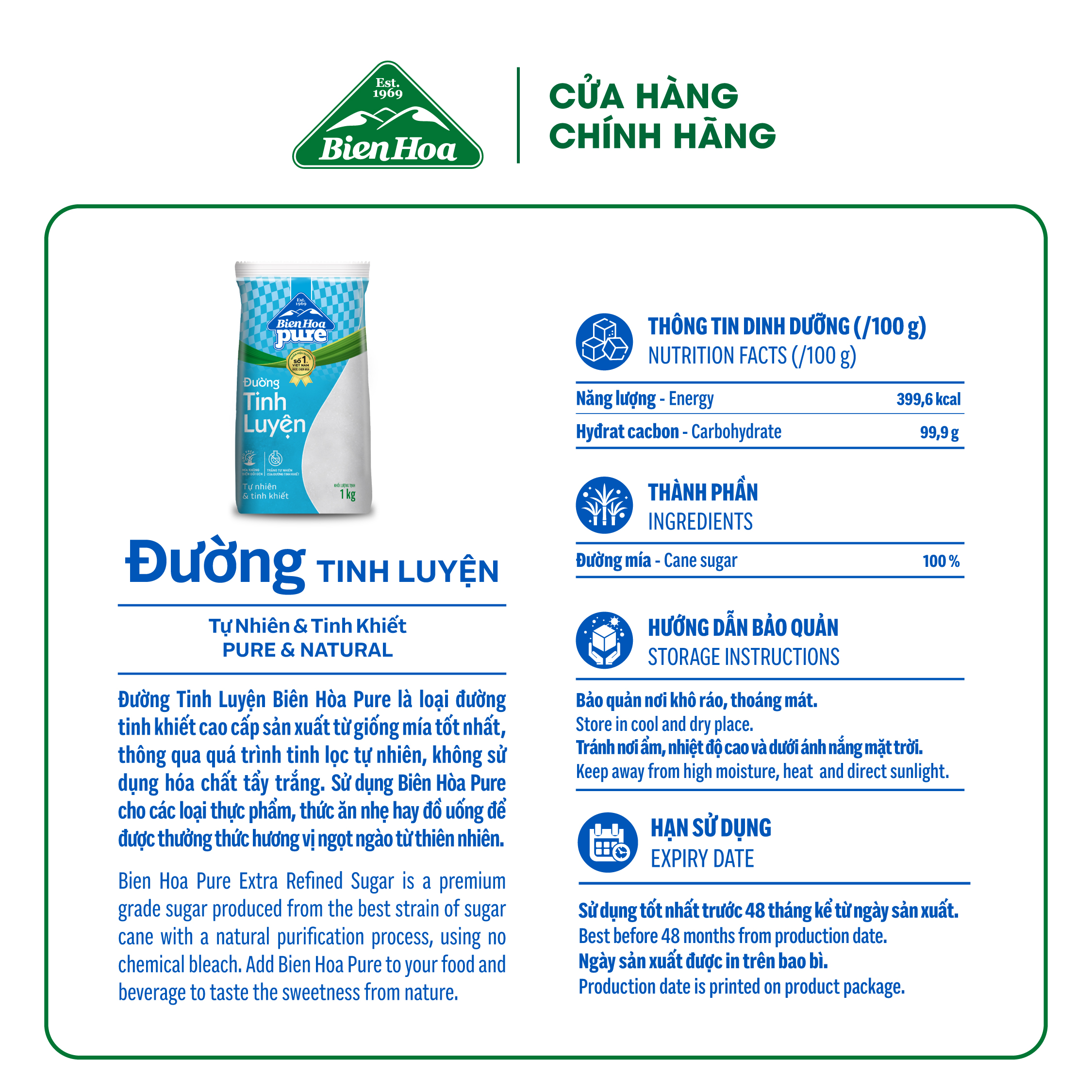 Đường tinh luyện Biên Hòa Pure 1kg là một gia vị không thể thiếu để tạo nên vị ngọt đậm đà cho các món chè và các món ăn của bạn. Sản phẩm tạo nên