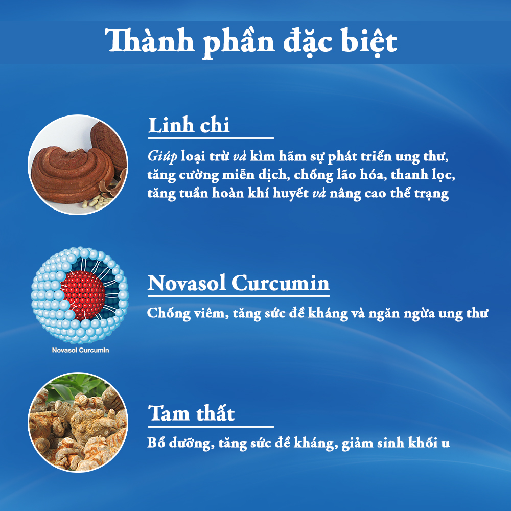 - Linh chi, Tam thất, Bạch hoa xà thiệt thảo, nghệ