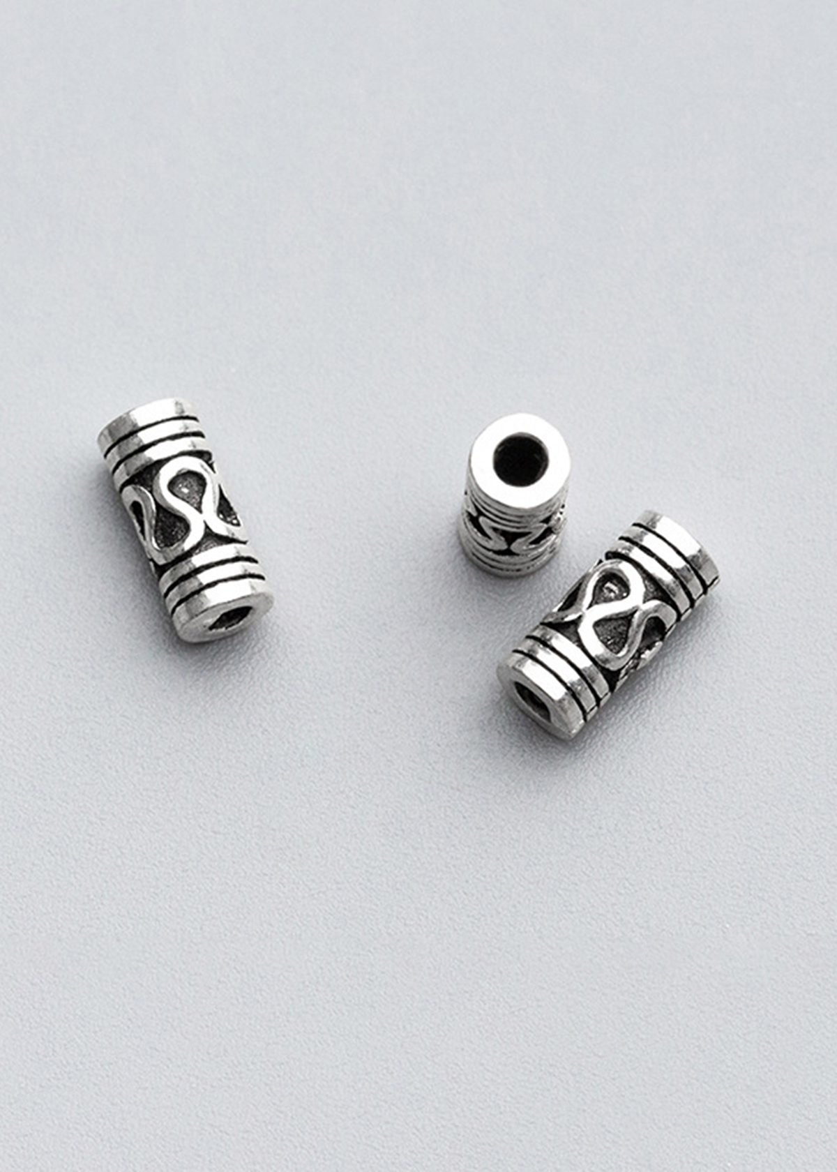 CHARM BẠC CHẶN HẠT HÌNH TRỤ HỌA TIẾT HOA VĂN: