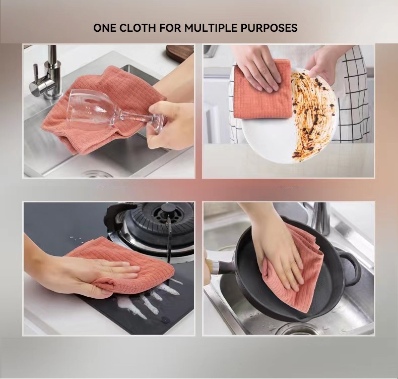 Khăn lau đa năng nhà bếp rất tiện ạh: lau bát đũa, lau mặt bếp, lau dọn tủ... Em muốn nhấn mạnh là chất liệu của loại khăn này - chất liệu Microfiber - nổi