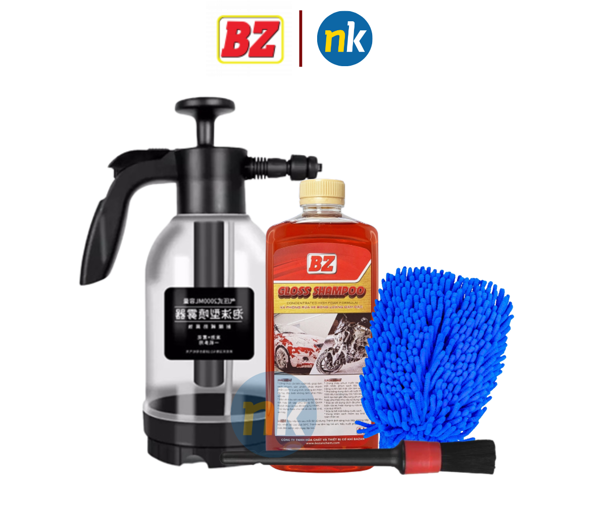 ✨Combo 4 món nước rửa xe BZ, Bình Tạo Bọt Tuyết, Găng Tay Rửa Xe 2 lớp Kèm Cọ rửa chi tiết, rửa xe siêu sạch, siêu sáng bóng