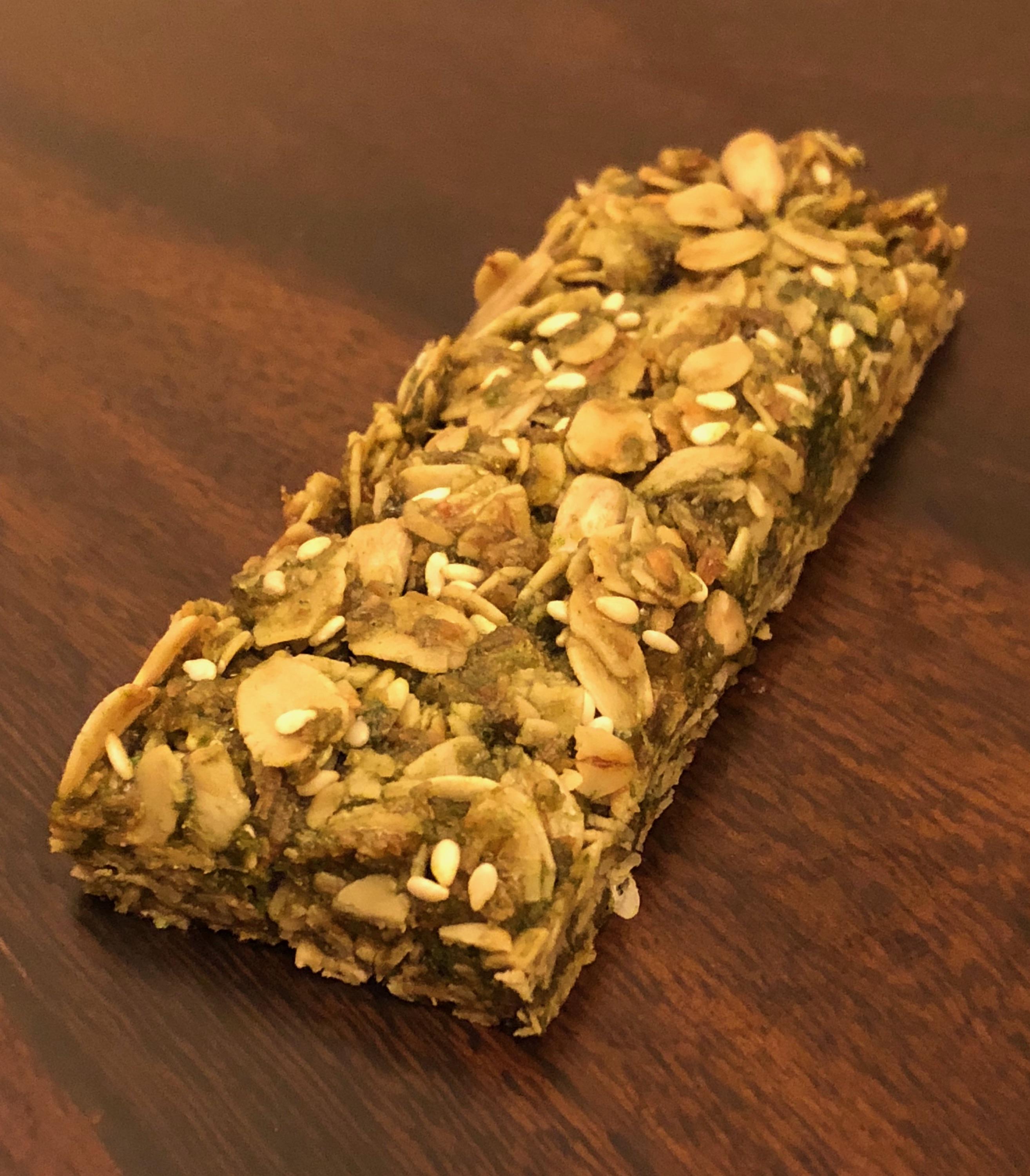 J SIMS Granola Bar Matcha Snack Heathy Nutritious Convenient Snack Just the right type of nutrition, when you have no time for a meal. Plant based nutrition that provides energy for a hard day at work.