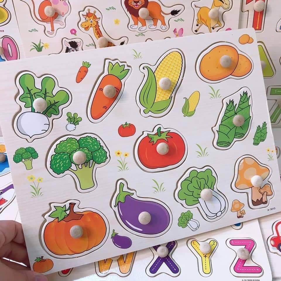 bảng núm gỗ các chủ đề chữ cái chữ số, con vật , cho bé