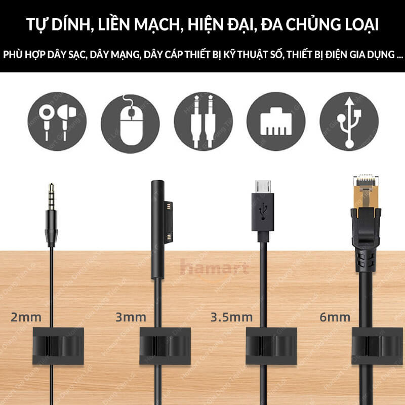 ✨COMBO 5 Móc Treo Dây Điện Keo Siêu Dính Tường Hamart Nút Cố Định Dán Đi Cáp Điện Chống Rối