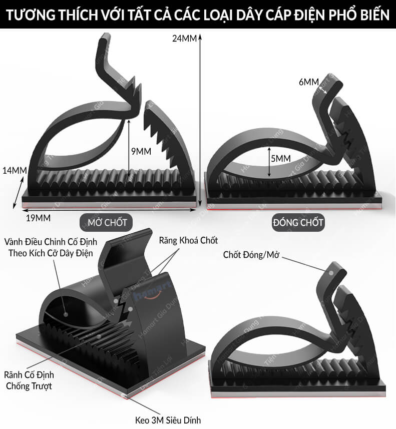 - Kích thước đa dạng, phù hợp cố định nhiều kích cỡ dây điện đa chủng loại theo nhu cầu