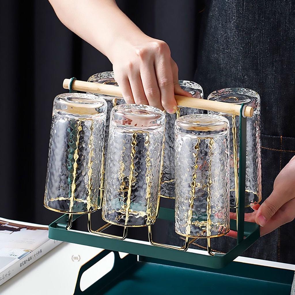 Giá cắm 6 chiếc cốc dạng gọn (CL95965) Giá có khay hứng nước Chất liệu sắt sơn tĩnh điện cao cấp màu vàng cực sang chảnh Dễ vệ sinh, không bị hoen rỉ Kiểu dáng