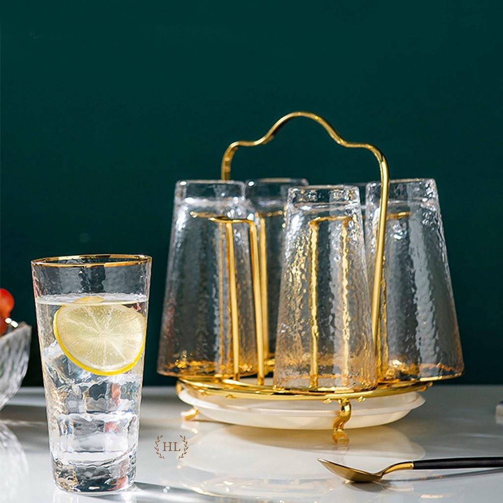 Chất liệu: thủy tinh Bộ sản phẩm gồm: 6 cốc thủy viền vàng VÀ GIÁ ÚP CỐC THEO HÌNH Thiết kế đẹp mắt, phù hợp tiện dụng Độ bền cao, chịu nhiệt tốt, hạn chế