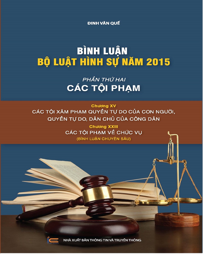 Bộ luật Hình sự (BLHS) đã được Quốc hội khóa XIII, kỳ họp thứ 10 thông qua ngày 27 tháng 11 năm 2015 và được sửa đổi, bổ sung tại kỳ họp thứ 3 Quốc hội khóa XIV ngày 20 tháng 6 năm 2017, có hiệu lực thi hành từ ngày 01 tháng 01 năm 2018 (sau đây gọi tắt là BLHS năm 2015). Đây là BLHS thay thế BLHS năm 1999. BLHS năm 2015 không chỉ thể hiện một cách toàn diện chính sách hình sự của Nhà nước ta trong giai đoạn hiện nay, mà còn là công cụ sắc bén trong đấu tranh phòng, chống tội phạm; là một đạo luật thể chế hóa Hiến pháp năm 2013, đáp ứng yêu cầu cải cách tư pháp, bảo đảm hiệu lực quản lý của Nhà nước, góp phần tiếp tục thực hiện công cuộc đổi mới, đẩy mạnh công nghiệp hóa, hiện đại hóa đất nước. So với BLHS năm 1999, BLHS năm 2015 có nhiều quy định mới về tội phạm và hình phạt. Việc hiểu và áp dụng các quy định của BLHS trong việc đấu tranh và phòng ngừa tội phạm là rất quan trọng. Vì vậy, công tác phổ biến, tuyên truyền BLHS để mọi người, nhất là đối với các cơ quan tiến hành tố tụng và người tiến hành tố tụng nắm được nội dung cơ bản của Bộ luật, trong đó có những nội dung mới được sửa đổi bổ sung, nhằm áp dụng thống nhất là vấn đề cấp thiết. Nhà xuất bản Thông tin và Truyền thông phối hợp với Thạc sỹ Đinh Văn Quế, nguyên Thành viên Hội đồng Thẩm phán, Chánh tòa Hình sự - Tòa án nhân dân tối cao, người đã cho công bố gần 50 tác phẩm về hình sự và tố tụng hình sự, trong đó có bộ sách bình luận khoa học về BLHS năm 1999, đã được các cán bộ trong các cơ quan tiến hành tố tụng, các luật sư, các giảng viên và sinh viên trong các trường đại học luật và cán bộ làm công tác pháp luật tham khảo. Ra mắt bộ sách: BÌNH LUẬN BỘ LUẬT HÌNH SỰ NĂM 2015 (SỬA ĐỔI, BỔ SUNG 2017) @ Phần thứ nhất: Những quy định chung @ Phần thứ Hai - CÁC TỘI PHẠM GỒM CÁC CHƯƠNG: