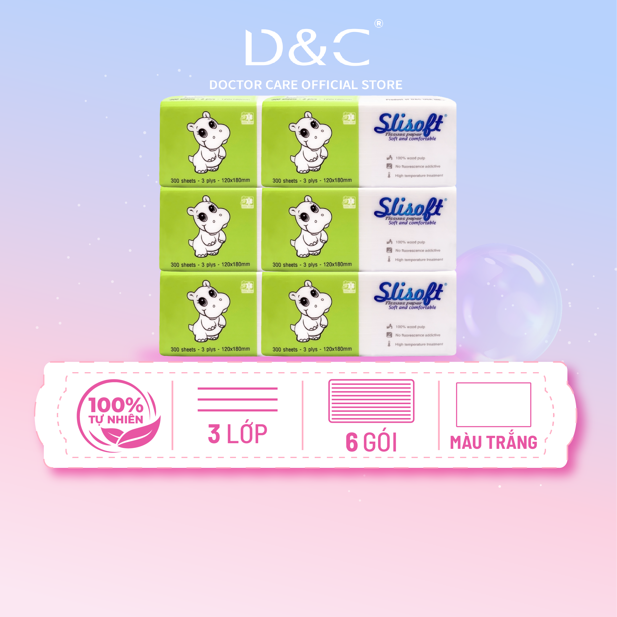 ✨Combo 6 Giấy ăn Slisoft Trắng 3 lớp x 100 tờ đa năng, khăn giấy rút không chất tẩy trắng an toàn cho cả gia đình