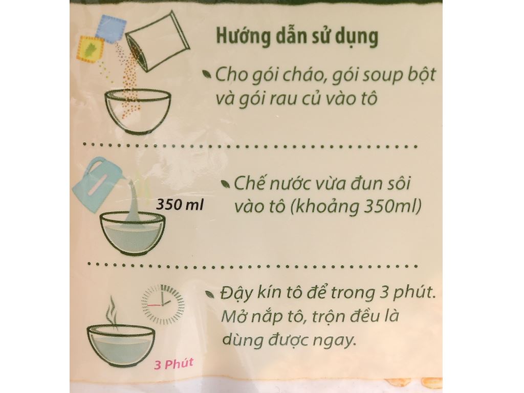 Cho gói cháo, gói soup bột và gói rau củ vào tô.