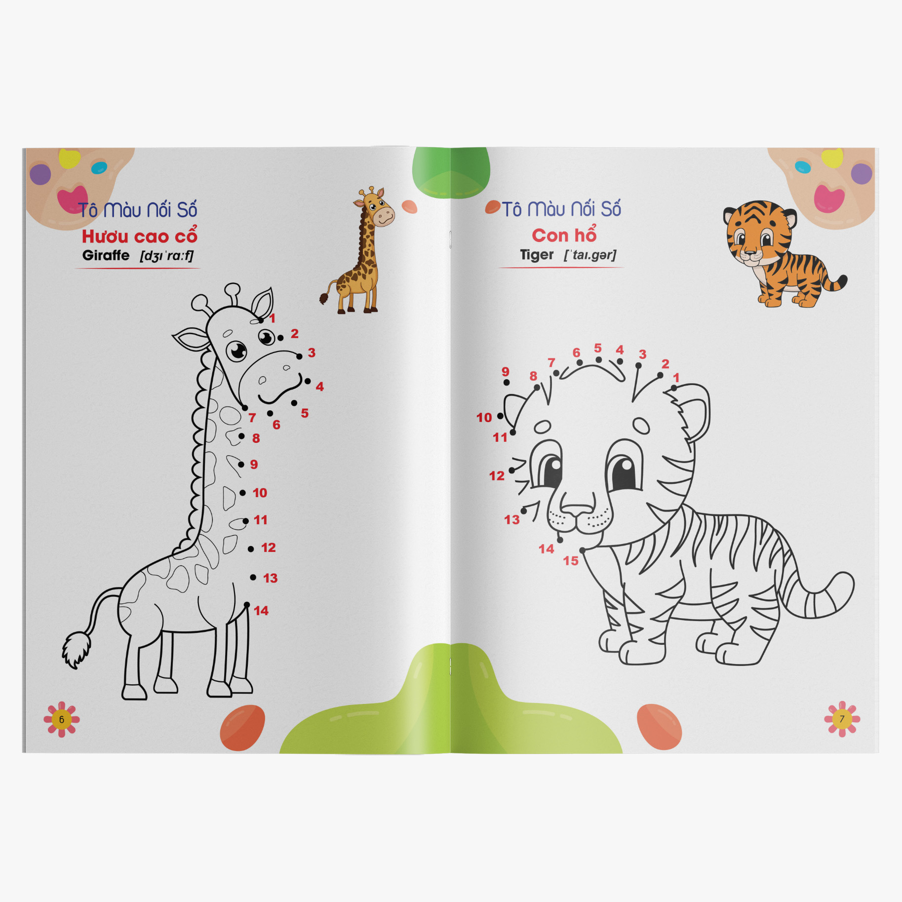 Tô màu Nối số Thông minh - Creative Dot to Dot Coloring Book là sản phẩm tô màu sáng tạo mới nhất của Tuan Viet Books với 8 chủ đề Song ngữ: