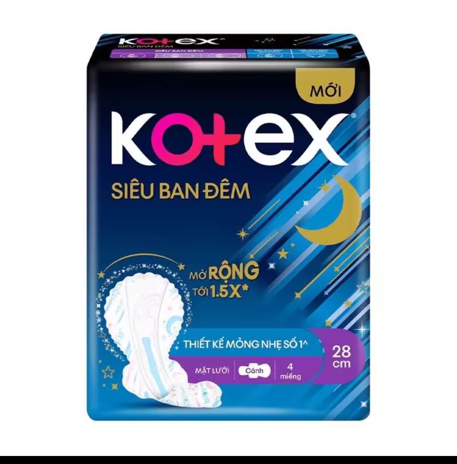 Băng Vệ Sinh KOTEX BẢO VỆ TOÀN DIỆN NGÀY NHIỀU VÀ ĐÊM MỚI Phiên bản 28cm dài hơn 1,2 lần so với băng ban ngày, với: • DÀI HƠN 1,2X bảo vệ tốt hơn cho