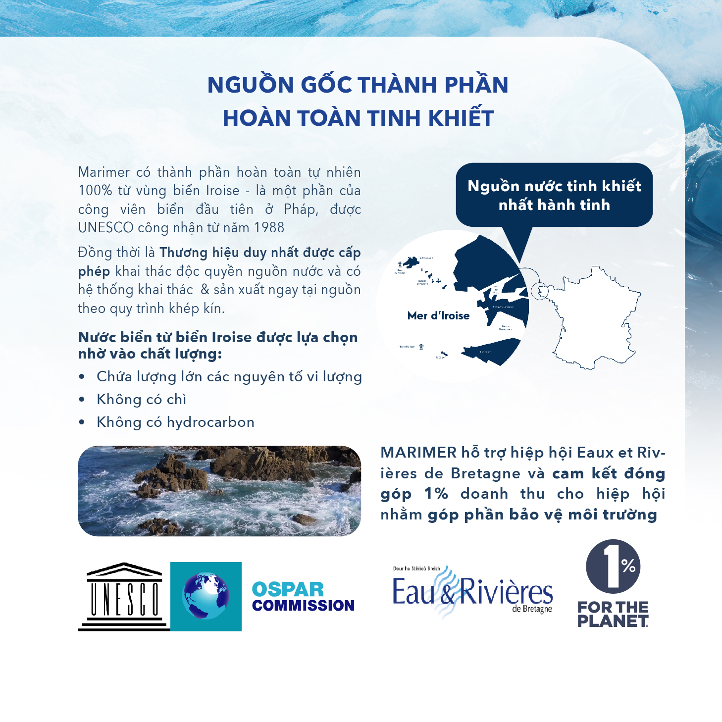THÀNH PHẦN: Nước biển đẳng trương, nước tinh khiết. CHỈ ĐỊNH: Sử dụng hàng ngày, - Marimer Daily Nasal Hygiene: dành cho người lớn và trẻ em từ 3 tuổi. - Marimer Baby Daily Nasal Hygiene: dành cho trẻ