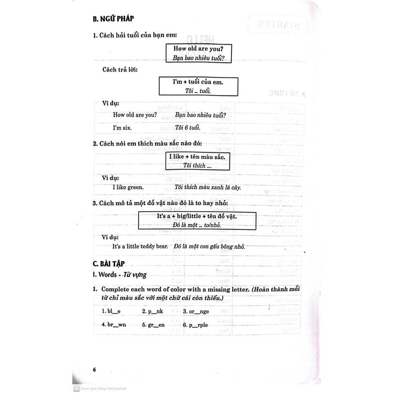 Các em sẽ luyện viết và học từ tiếng anh bằng các hình ảnh minh họa sinh động. Sau phần luyện viết từ vựng là các hoạt động chọn từ đúng, điền từ, ghép từ với hình thích hợp, sắp xếp từ. Nhằm giúp các em ôn luyện từ vựng đã học. Sau mỗi 3 đơn vị bài học có phần ôn tập (Review) với các hoạt động lý thú giúp các em củng cố kiến thức.