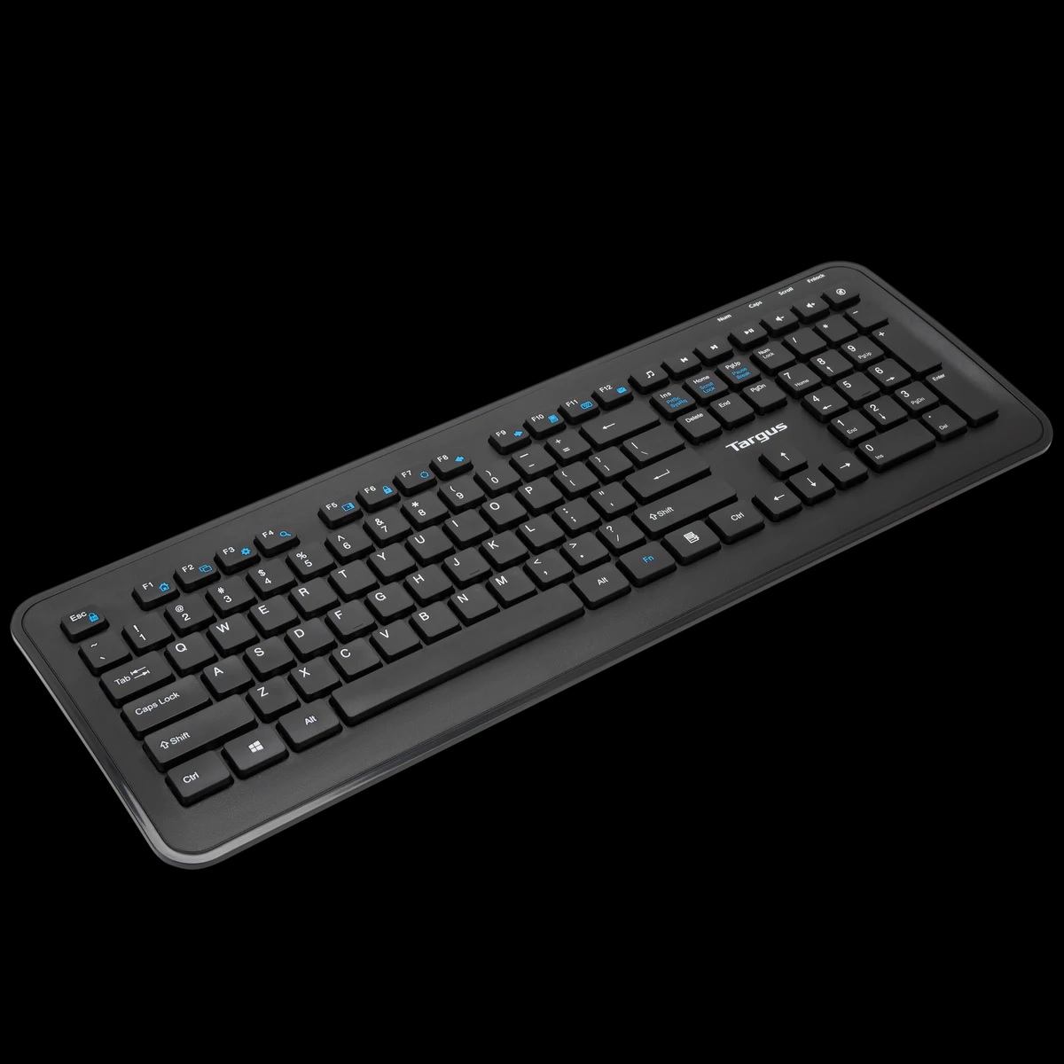 Bàn phím + chuột Targus KM610 kết nối USB không dây 2.4Ghz Bàn phím kích thước đầy đủ cho thao tác nhập liệu linh hoạt hơn Hành trình phím thấp, gõ nhạy, nhanh và hạn chế