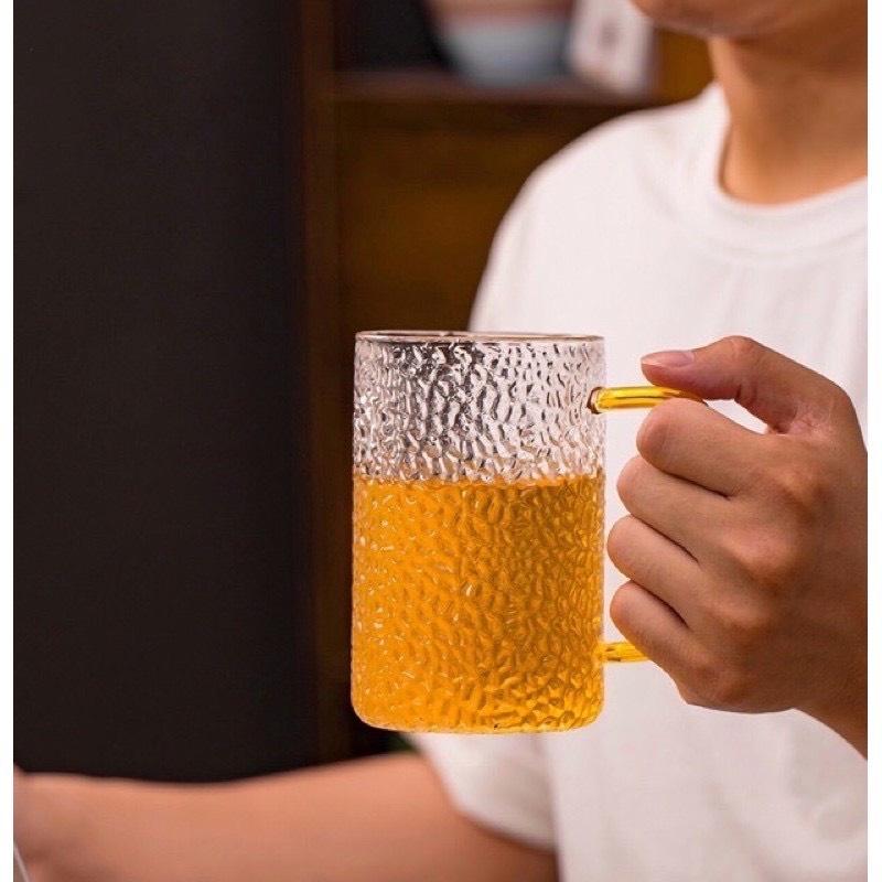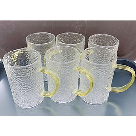 6 - Bộ 6 cốc thủy tinh vân sần quai vàng
