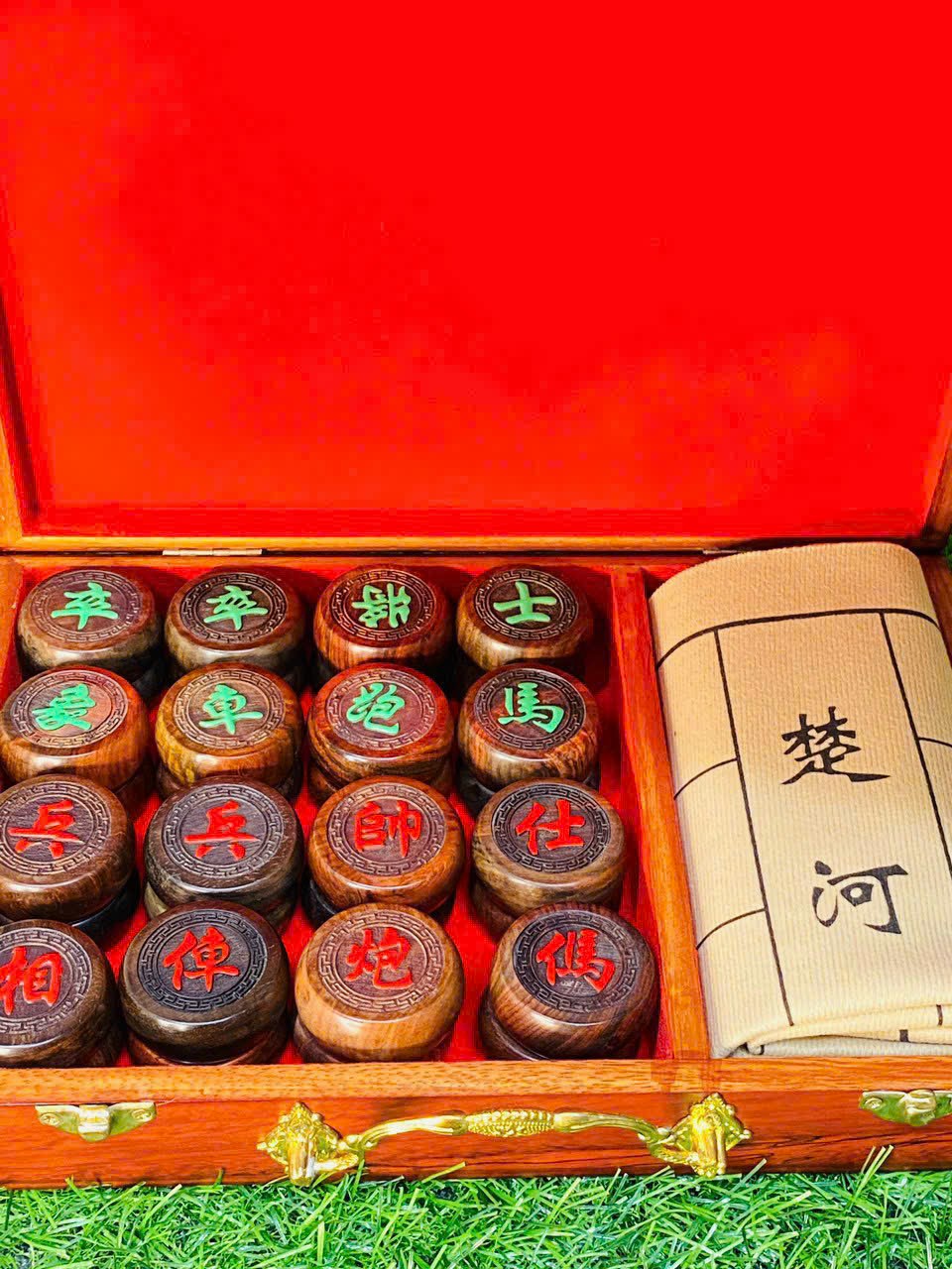_ Bộ  combo quân cờ tướng được làm bằng chất liệu gỗ trắc đỏ đen  + hộp  đựng gỗ hương tự nhiên 100% kèm  theo tấm vải  da đi  cùng  đủ bộ  _ Kt quân
