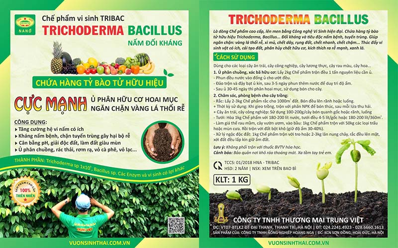 Chế phẩm vi sinh TRIBAC là dòng chế phẩm sinh học có chứa tổng hợp các vi nấm đối kháng trichoderma và vi khuẩn có lợi bacillus. Được lên men và sản xuất bằng công nghệ sinh học hiện đại, nên có hoạt năng ưu việt hoàn toàn so với các sản phẩm chỉ chứa nấm đối kháng trichoderma thông thường.