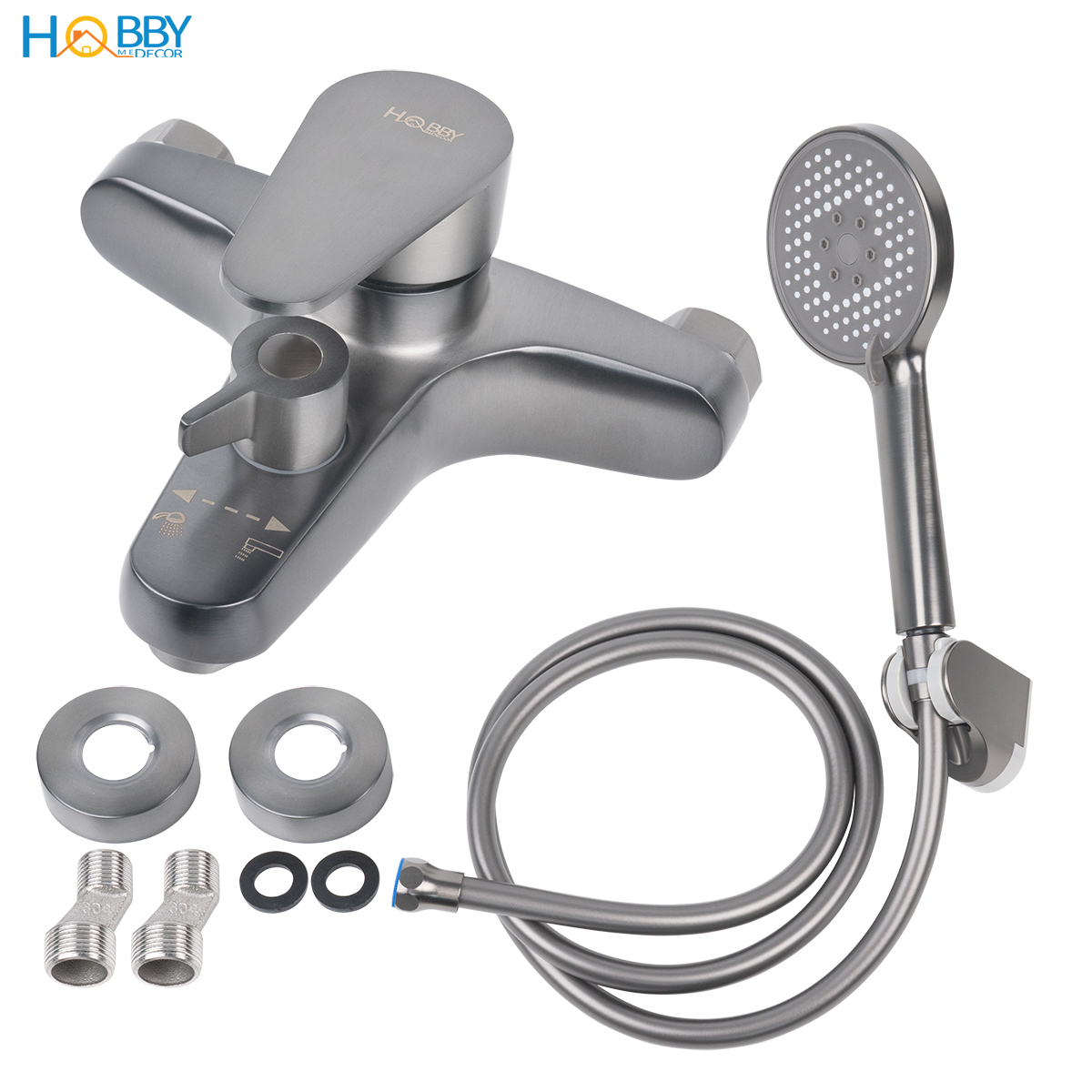 Combo củ sen tay sen nóng lạnh inox 304 sơn xám Hobby home decor CBX1 Thông tin kỹ thuật - Chất liệu chính: Inox 304, nhựa ABS cho lưới phun - Trọng lượng củ sen: