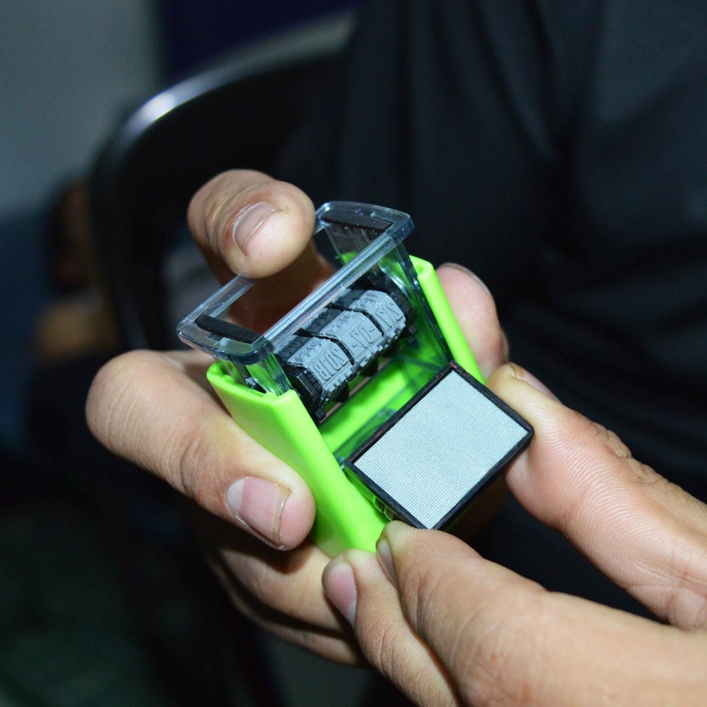 Dấu tự động lật chấm mực. Dùng tay xoay các vòng cao su để điều chỉnh ngày-tháng năm theo ý muốn.